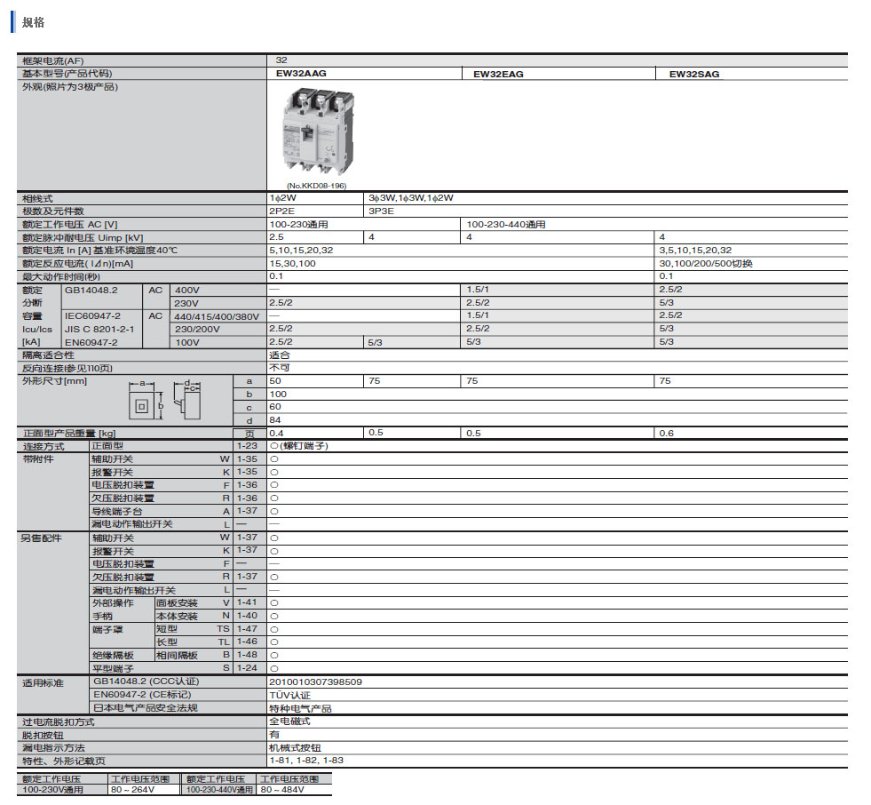 标准型号也对应国际规格(CCC/JIS/IEC/CE/ ),小型而高性能。产品阵容增加到4极品型号。 125-400AF的新型塑壳式断路器。